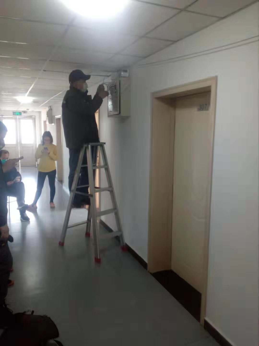 疫情突发,需要设置隔离区,对学14楼内的水、电、暖进行检修,楼内加装两套隔断,外围加设围挡,改造楼内路由器等设施;此前还对两处12间临时板房进行改造和检修,加装开水器作为临时周转用房。在人员紧张的情况下保洁部还负责起家属各楼楼道,垃圾桶的打药消毒,和垃圾的清运工作,安排给隔离人员送餐的工作。“初三我们从接到任务就马上行动起来了,在一天内楼内的隔断、楼外的围挡一天搭建起来,在我们物业中心党支部的带领下,我们的工人中午不休息大家加班加点终于在天黑前把活抢了出来。医生在前线争分夺秒,我们后勤人员在后方更要争分夺秒。”
