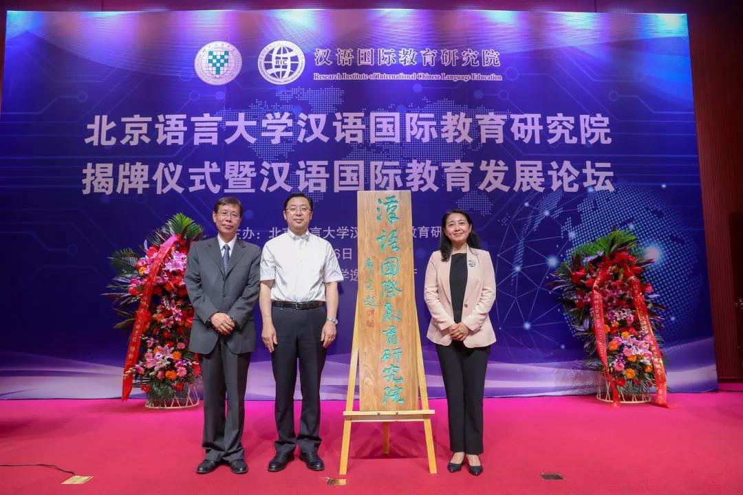 2019年6月6日,汉语国际教育研究院揭牌仪式暨汉语国际教育发展论坛在逸夫楼报告厅隆重举行。全球首家汉语国际教育研究院挂牌成立。北京语言大学校长刘利教授、孔子学院总部党委副书记于天琪、北京大学陆俭明教授、汉语国际教育研究院院长崔希亮出席揭牌仪式并讲话。来自国内十几家高校的专家学者、北京语言大学师生200余人见证了汉语国际教育研究院成立。