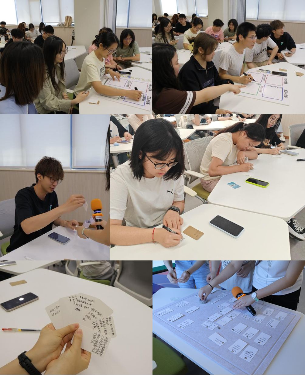 班级同学以小组为单位进行“时间管理四象限”趣味活动,把日常琐事按照紧急、重要程度进行分类,小组代表为大家分享展示了分类的思路。此外,学院师生一同参与了“时间债务清算”行动,一起把解决措施卡贴到“时间承诺墙”上。班会现场气氛热烈融洽,同学们以承诺展示表达了自律的决心,也为班会画上了圆满的句号。