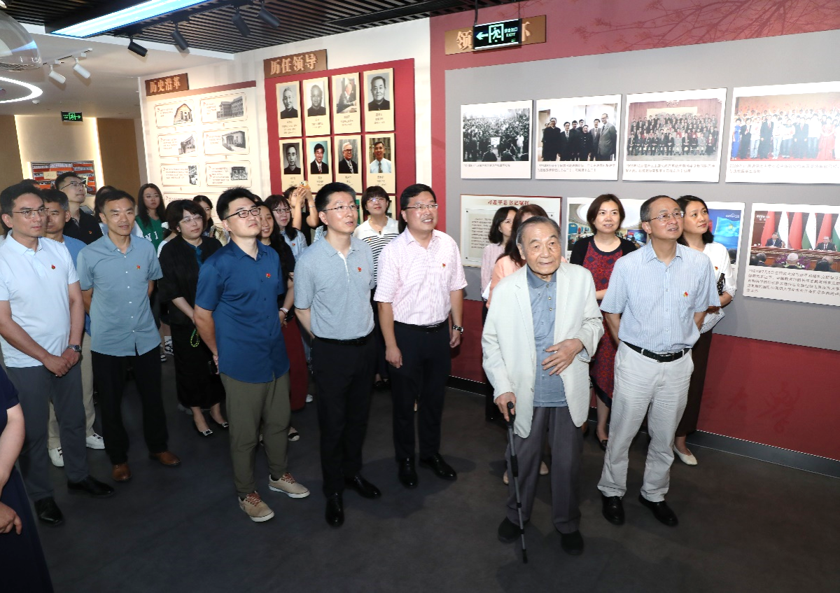在大家的簇拥下,刘珣教授在校史馆模拟情景现场,饶有兴致地讲起他所亲历的北语建校发展的历史,生动再现了老一辈国际中文教师教育家们教书育人、爱岗敬业的生动故事。在报告中,刘珣教授从事业和学科的发展分期、教材编写、测试研制、教学理论与教学方法研究等方面回顾了学科初创时期的北语,带领老师们深入走进了那段峥嵘岁月。刘珣教授是我国对外汉语教育事业的重要奠基者之一、汉语作为第二语言教学学科体系的创建者之一。段鹏校长在今年的毕业典礼致辞中讲到,刘珣教授将自己的事业概括为“四件小事忙半生”,“一套教材、一份考卷、一本小书、一张课表”这四件小事奠定了汉语国际教育的学科基础,填补了早期教学研究空白。