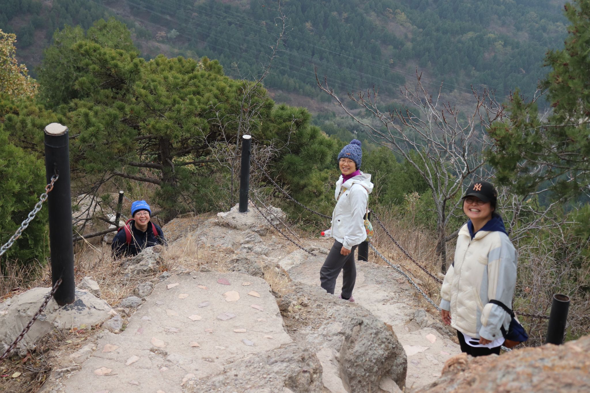 当天上午,阳光明媚,虽然寒意料峭,但仍然难抵老师同学们的热情。师生一行满含对活动的期待,早早地来到了十三陵国家森林公园门口准备此次党建活动。简单热身后,师生们开始攀登蟒山。蟒山位于昌平区的东北部,因其山势起伏如大蟒,故名蟒山。蟒山实现了一地得“五观”的浩荡之势,将京城、林海、天池、星空、明十三陵的广阔与壮丽尽收眼底,彰显了生态文明与文化内涵相互映衬的无穷魅力。攀登过程中,师生拾阶而上,畅叙情谊。虽然山路崎岖,但老师和同学们互相鼓励,互相帮助,历经2个多小时成功登顶,彰显了新闻传播学院的团队意识和协作精神。