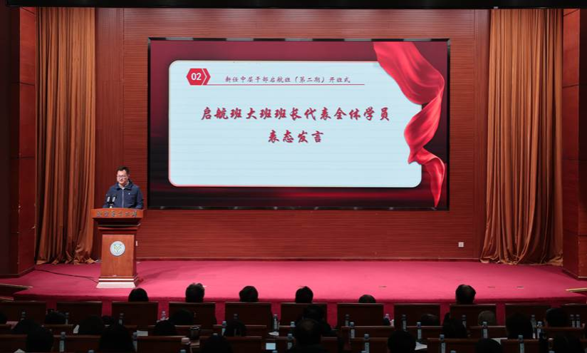 开班式上,杨林坡副教授代表全体学员进行表态发言,郑重承诺将努力在学习中做到“四个坚持”,即坚持认真学,严格按照党委组织部(党校)关于此次干部教育培训的具体规定和要求,遵守培训纪律,保质保量完成学习任务;坚持系统学,将本次学习置于系统学习新时代习近平中国特色社会主义思想的学习中来学,置于系统学习贯彻党的二十届三中全会精神和全国教育大会精神中来学习;坚持带着问题学,立足实际工作遇到的问题困惑,面向学校高质量发展的现实需要,提高学习的针对性;坚持带着目标学,查找自身不足与短板,提高学习的实效性,做到学有所悟、学以致用,切实通过启航班教育培训,不断提高理论修养、党性修养和履职能力。