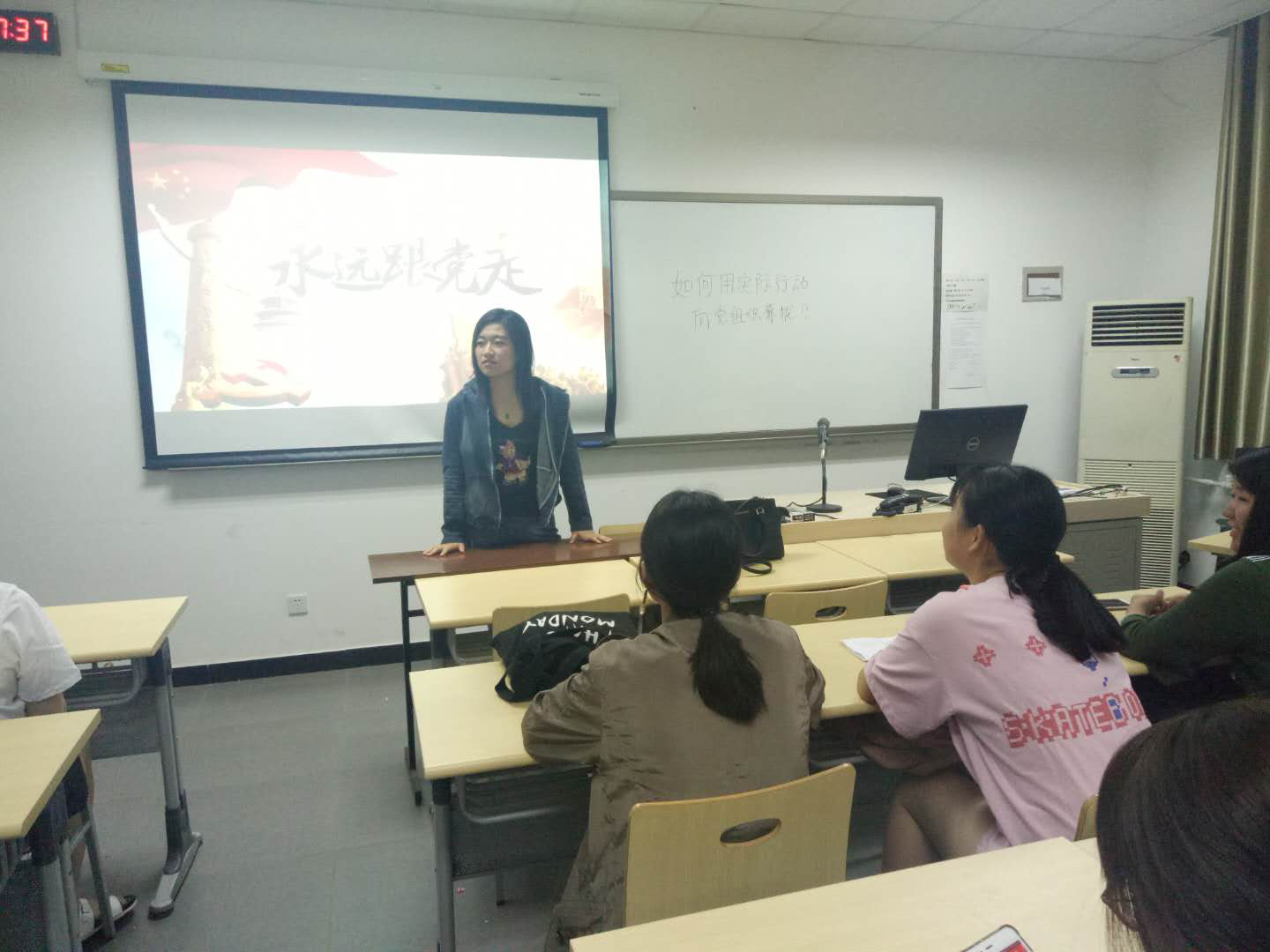 5月7日晚,外国语学部初级党校第一、二小组成员围绕“如何用实际行动向党组织靠拢?”主题开展了讨论会。来自英语学院的26名申请入党的同学聚集在教二202,302教室,分别从思想上,理论上,行动上阐述了自己将如何用实际行动向党组织靠拢。