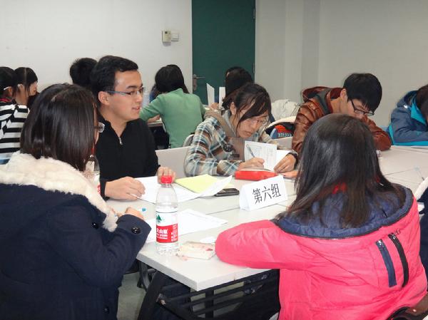 在各个组长的带领下,大家分别就“十八大的召开对于国内和国际的影响”,“十八大换届的想法”,“习总书记演讲在大学生学习和生活的体现及反思”,以及“有关反腐倡廉的做法”这四个话题进行了开放性的讨论,并且每个小组就其中的一个问题畅谈自己的想法。在讨论的过程中,大家也分别结合当下中国的国情以及发生在自己身边的事做出了精彩的阐述。同时张弛老师也深入各个小组,与大家共同讨论。