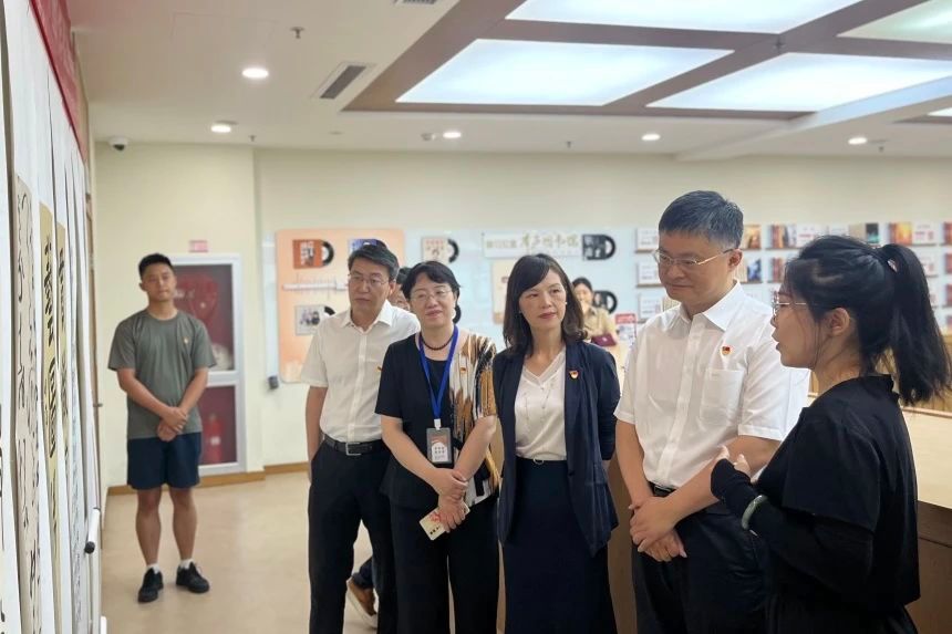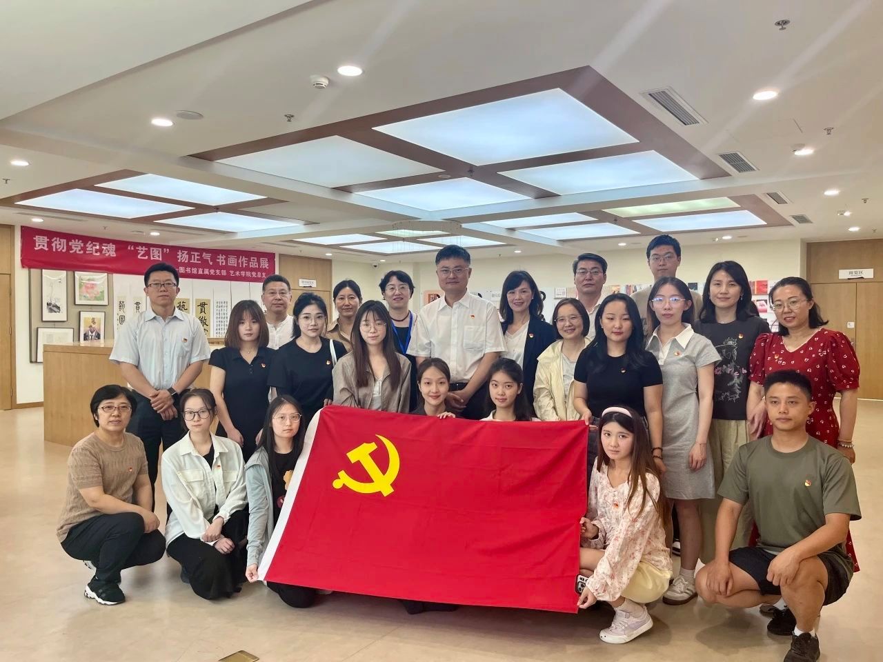 为进一步深化党纪学习教育,丰富教育形式,增强学习效果,6月28日中午,艺术学院党总支、图书馆直属党支部联合举办的“贯彻党纪魂、‘艺图’扬正气”书画作品展开展。学校党委副书记、纪委书记罗建晖,纪委办公室、学校办公室等相关职能部门负责人应邀前来观展,图书馆直属党支部书记邓亚文、艺术学院党总支书记陈霞以及两个单位的师生党员代表一同参加活动。展览设在图书馆二层公共区,共展出了十余件艺术学院学生们的优秀绘画书法作品,他们将自己对廉政教育的相关体悟呈现于作品之中,在学中体会、在写中感悟、在画中深思,紧扣党纪学习和廉政教育主题,用翰墨妙笔扬廉政清风。