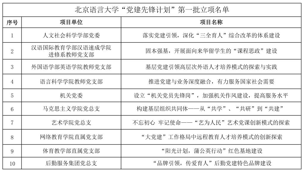 附件: 北京语言大学“党建先锋计划”第一批立项名单