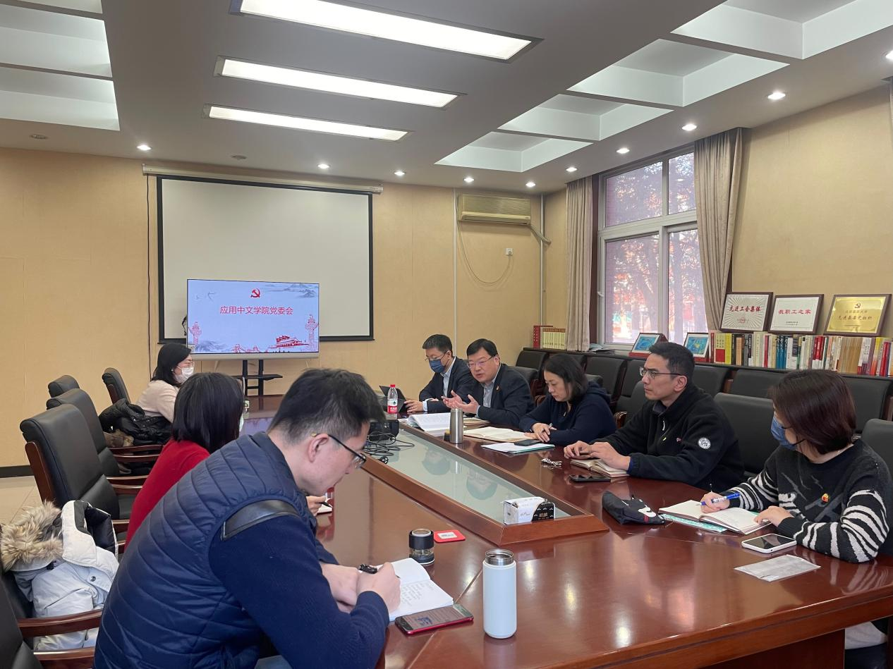 北语新闻网4月16日电(通讯员 白浩 摄影 李晨露)为深入贯彻落实《中共中央办公厅关于在全党开展深入贯彻中央八项规定精神学习教育的通知》和教育部党组相关要求,应用中文学院党委围绕学校《关于开展深入贯彻中央八项规定精神学习教育的实施方案》(以下简称学习教育)开展部署工作,扎实推进学习教育工作,以作风建设新成效推动学院高质量发展。