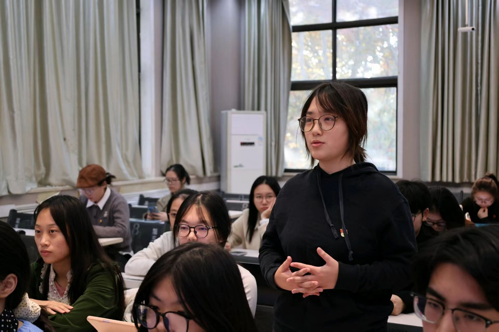 六位同学的分享真挚动人、内涵深刻,引发在场师生的强烈共鸣。学生党员翁紫嫣和赵政赫结合自身感悟发言。他们表示,六位同学的故事里有汗水,也有感动,像一颗颗种子,在他们心中生根发芽。